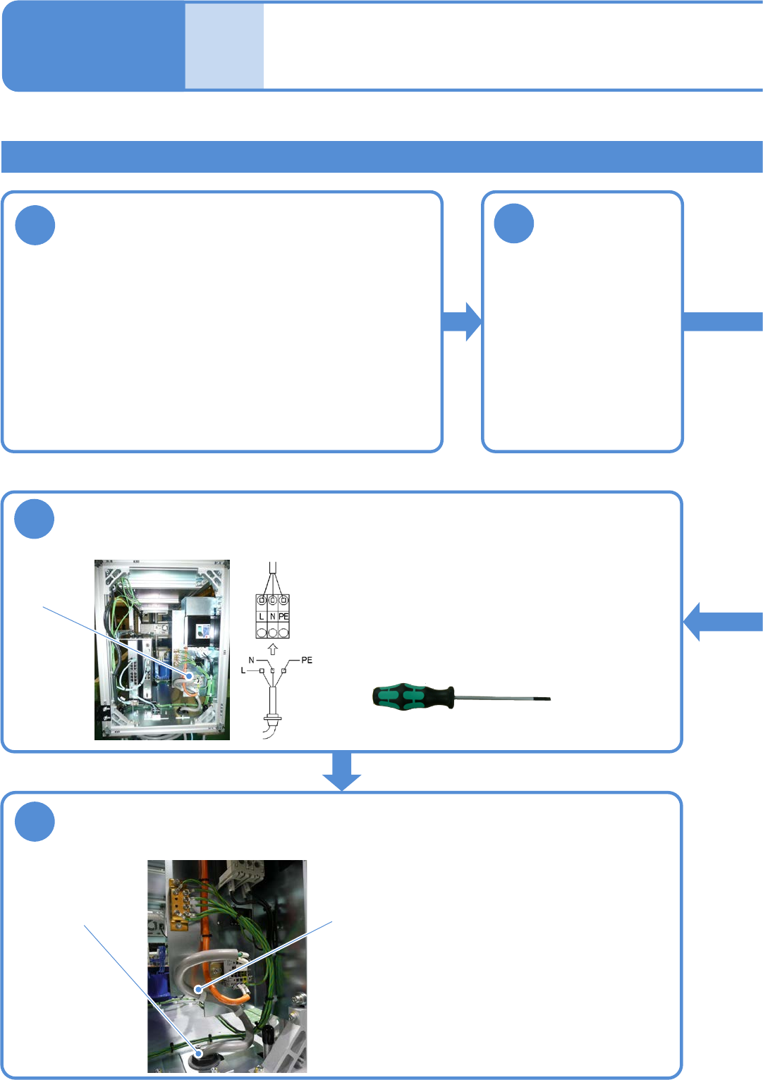 ●连接电缆时,先将PE线连接后,再按照L → N