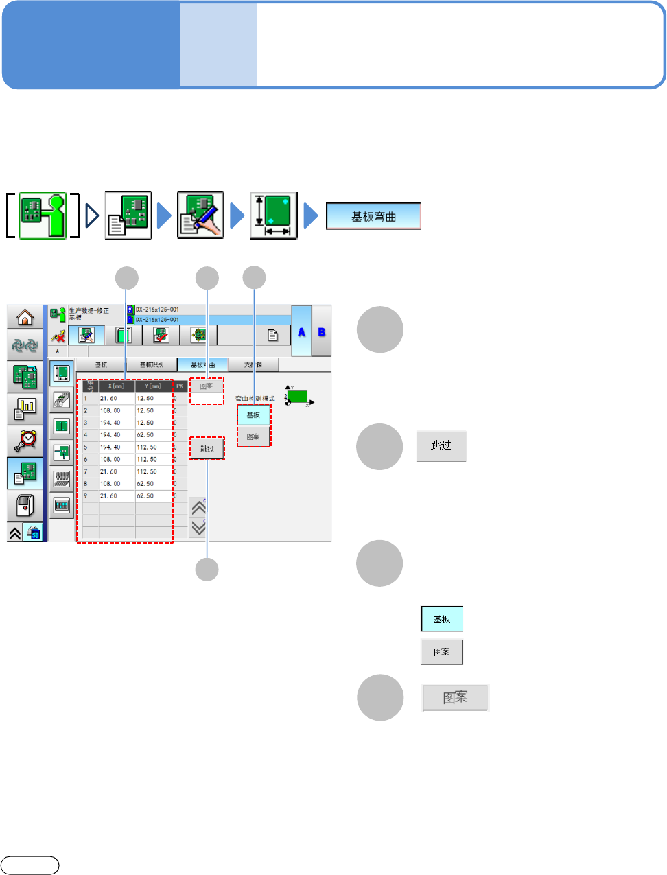 在这里对确认、修改基板弯曲计测点数据的方法进行说明。
