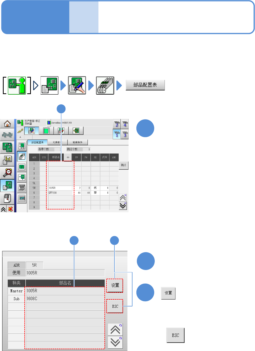 对供料器工作台上的供料器和托盘上的托盘板配置、存储状态的确认和修改方法进行说明。