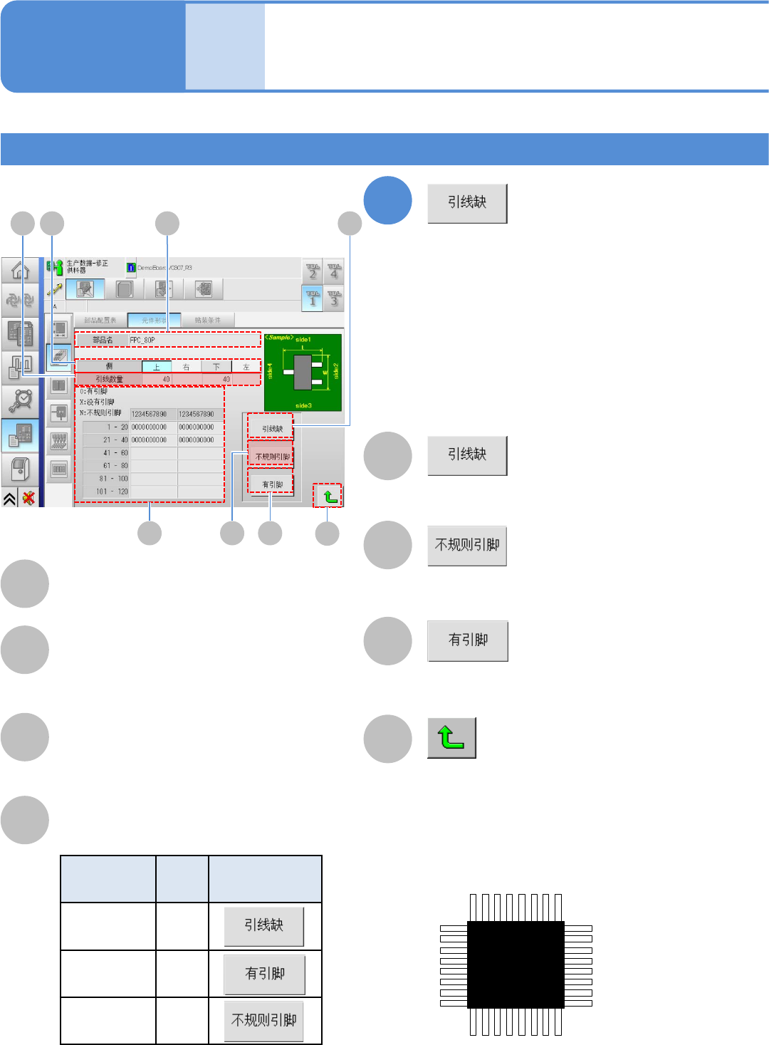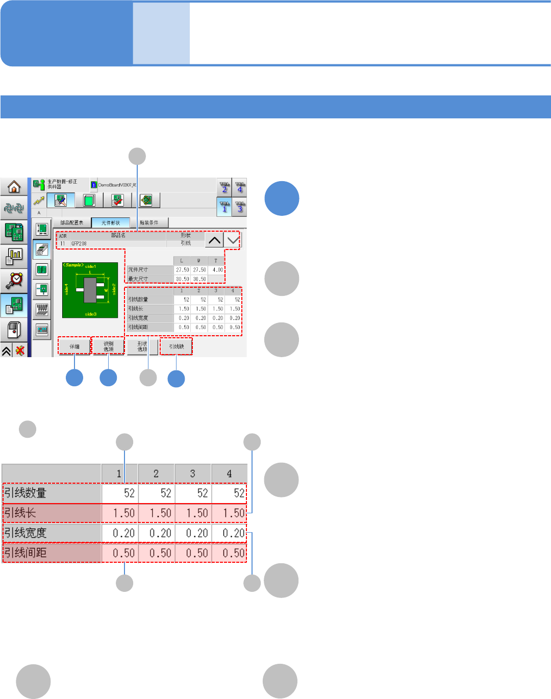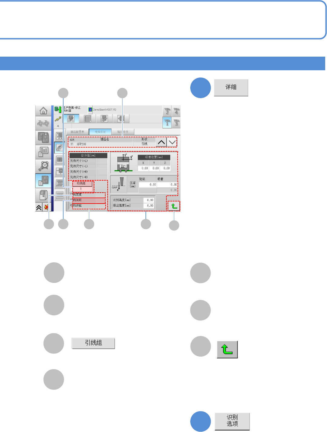 EJM8D C - MB - 12E - 00 NPM - DX 2 D C E F A B 12 -1-8 -6 A B ( → P.12 -1-8 -2 ) C D E F G G 3 ( → P.12 -1-8 -1 ) 元件信息 元件尺寸的容许值和 吸着/贴装信息 对详细数据进行 确认、修改。 引线宽度 选择引线组。 上边、右边、下 边、左边的引 线宽度的容 许值 。 引线浮起 引线间距 引线浮起的容许 值。 上边、右边、下 边…