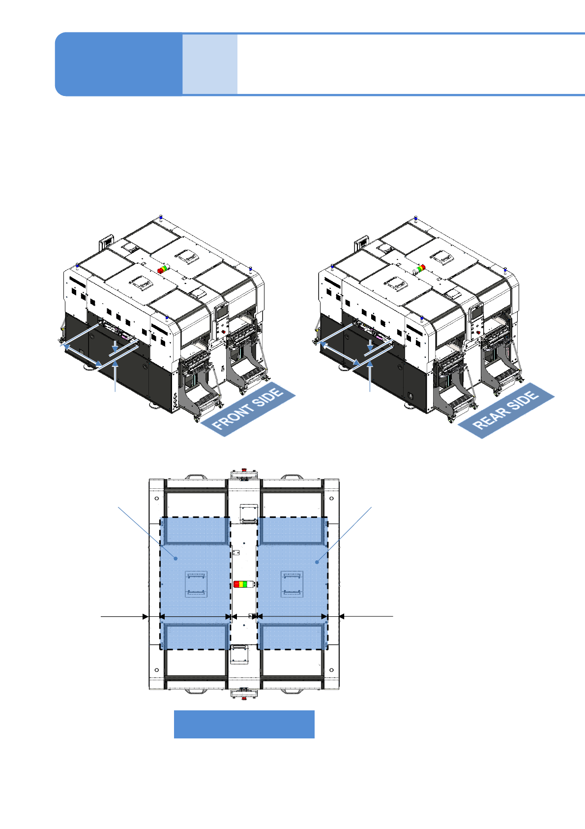 EJM8DC-SF-01C-0 0 NPM-DX 安全管理 连接周围装置时的 注意事项 1-3-3 1-3-3 -1 750 mm 119 mm 750 mm 119 mm 贴装头可动范围 108.2 mm 108.2 mm 贴装头可动范围 599 mm 599mm 236 mm FRONT SIDE 在 NPM-DX 的左侧和右侧上存在基板搬送的开口部 。设备内的贴装头会在下图 所示范围内进行高速移动, 因 此将手伸进开口部是非常危险…