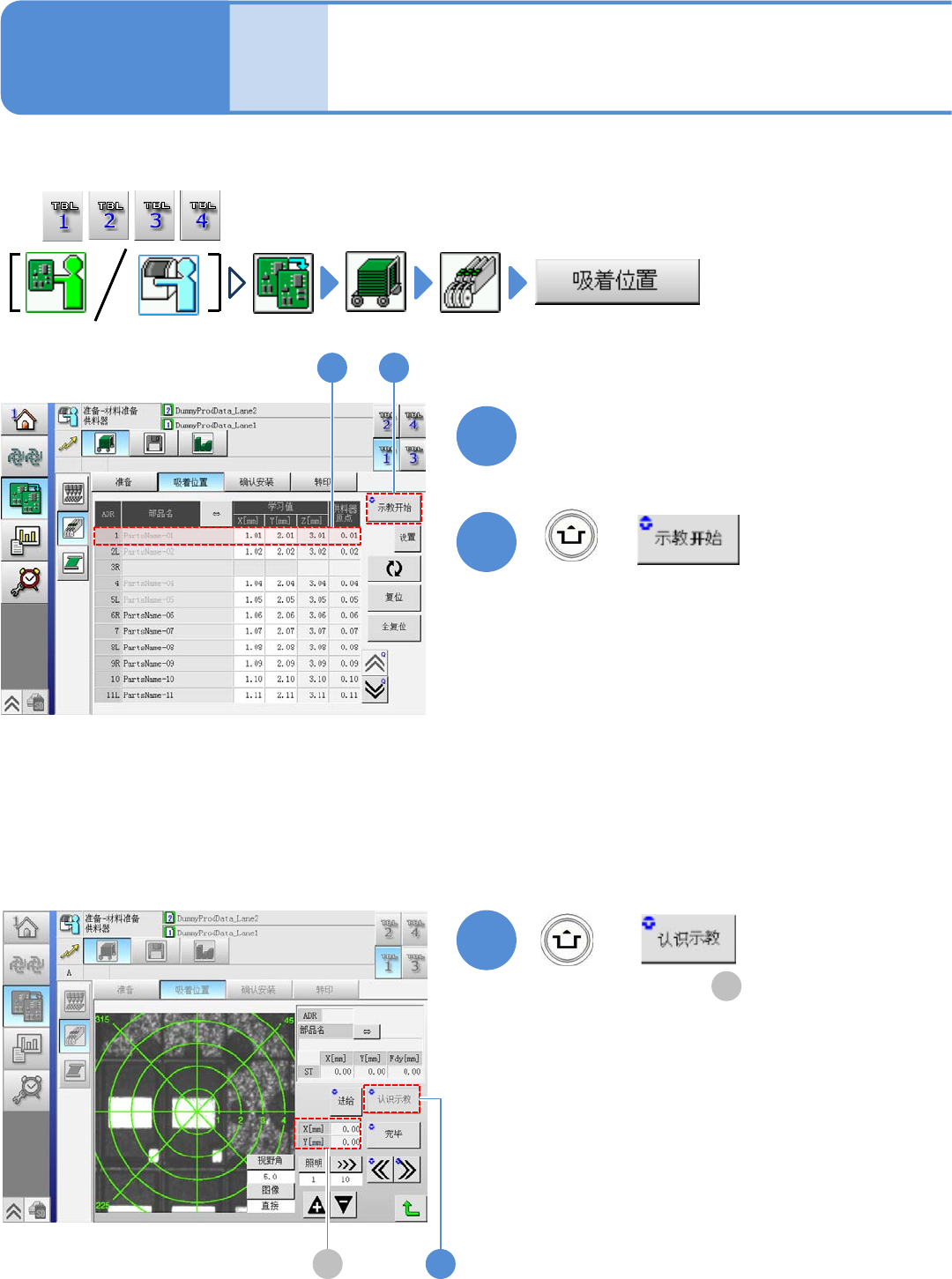 在生产时,可对每个供料器地址确认吸附位置学习的补正值。另外,当学习值存在问题时,即进行示教。