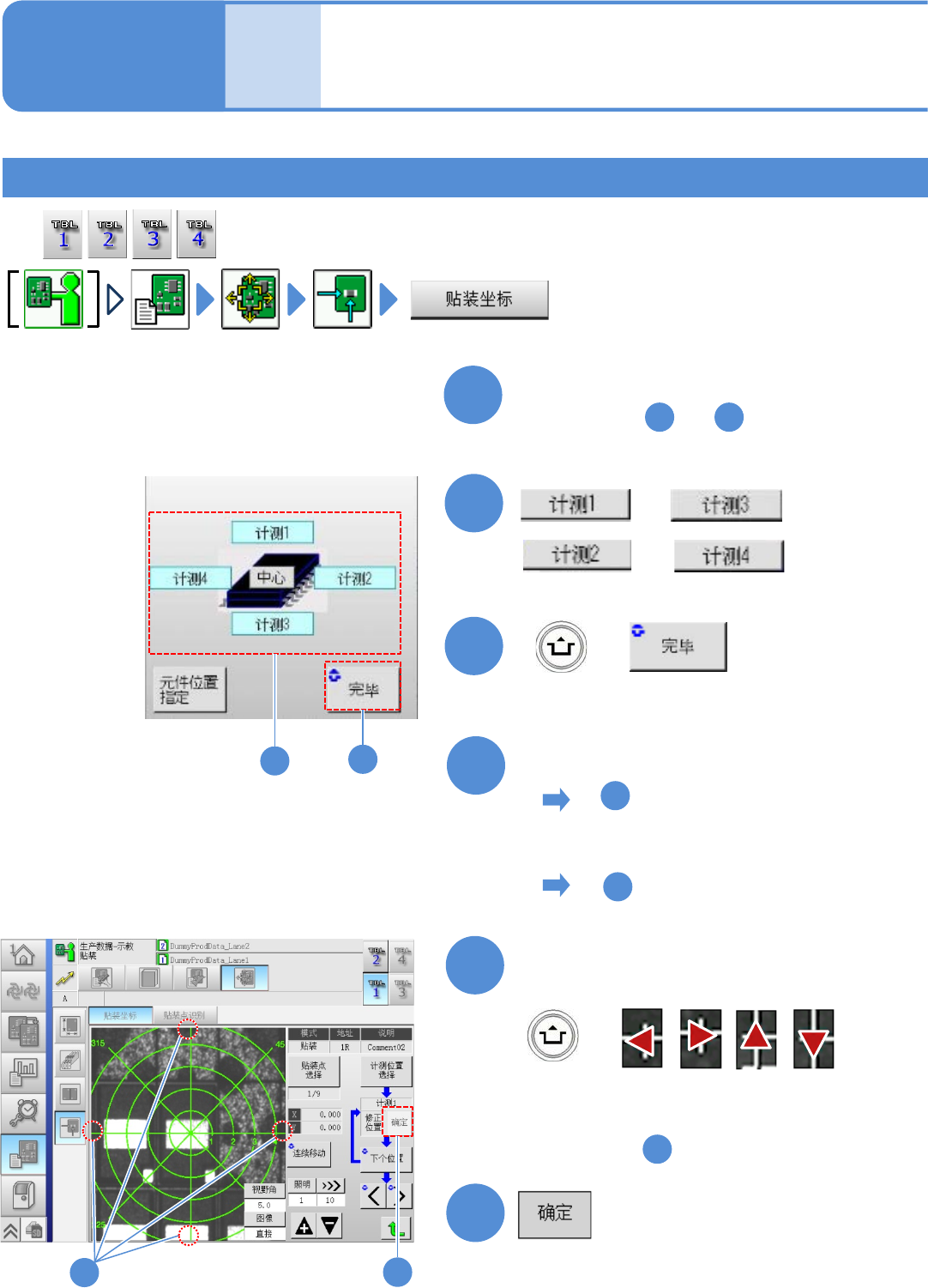 EJM8D C - MB - 12E - 00 NPM - DX 通过元件进行 示教 ( 计测方法 : 4 点 ) 1 2 3 + 4 5 + 6 2 3 12 -2-9 - 17 生产数据 示教 贴装坐标示教 9 工程师手册 12 - 2 - 9 、 、 、 进行「通过元件进行示教 ( 计测方 法 : 1 点 ) 」 中 ~ 的操作 1 7 ■基板上有贴装元件时 ■基板上没有贴装元件时 5 7 至 至 使十字线对准元件端面 ●使十字线…