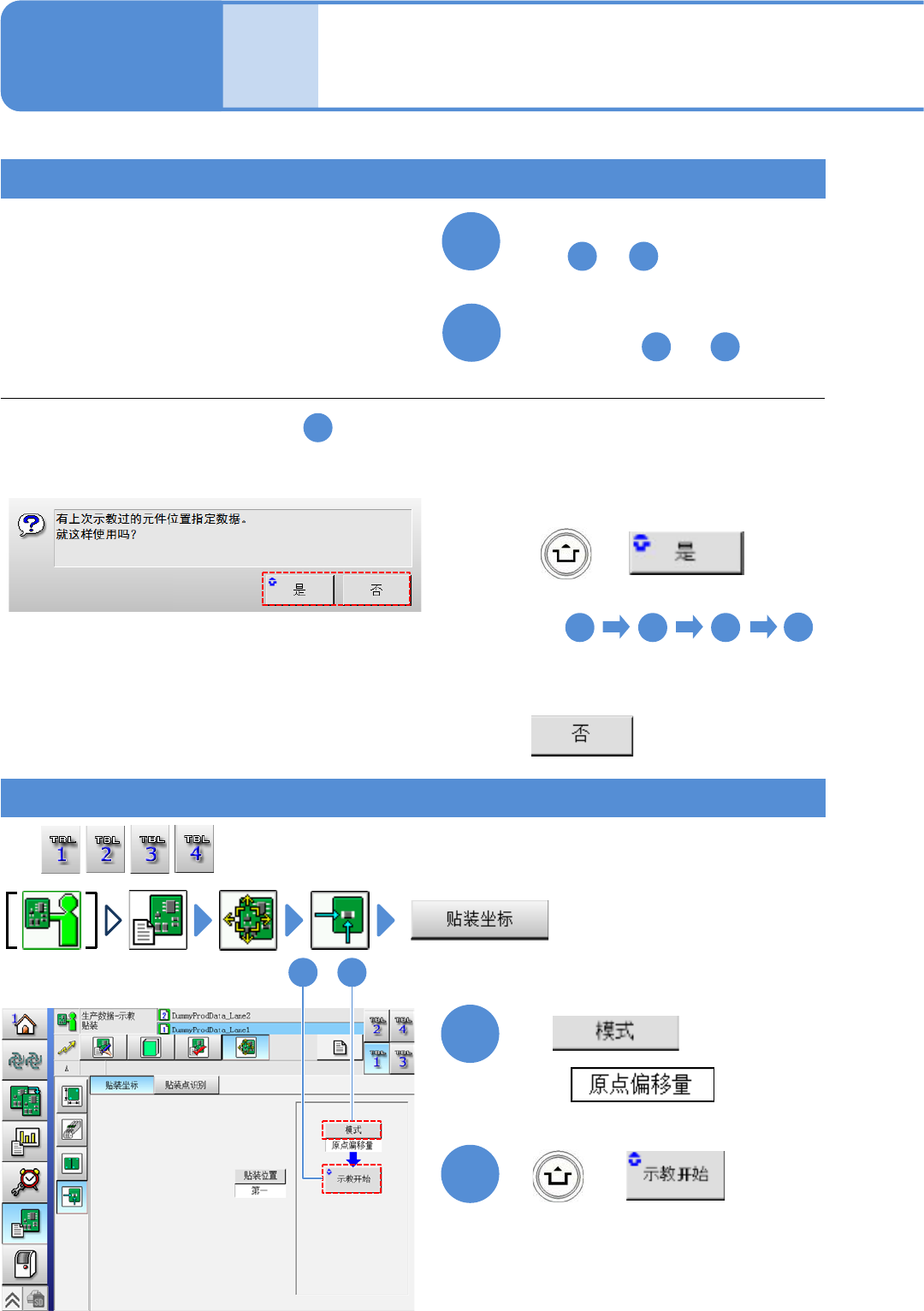 以前的示教数据存在时,在步骤 以后,会显示以下提示。