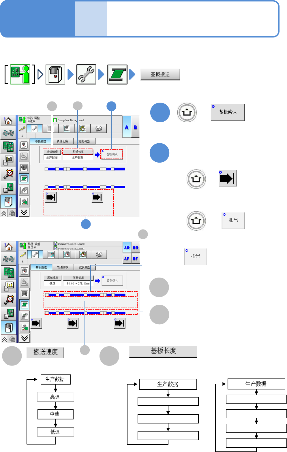 选择基板长度。 选择传送速度。