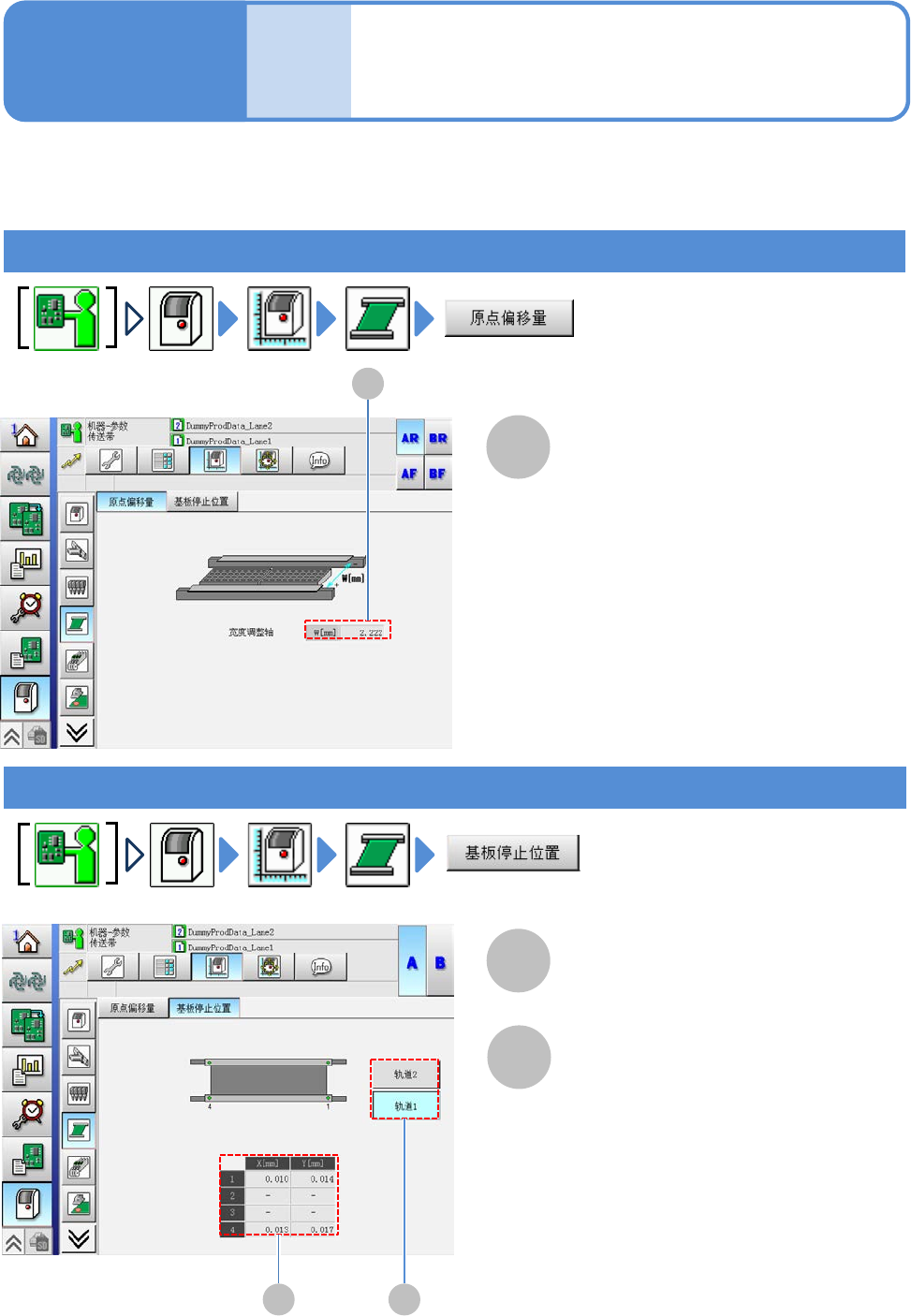 ●使用双轨传送带时,事先选择轨道。