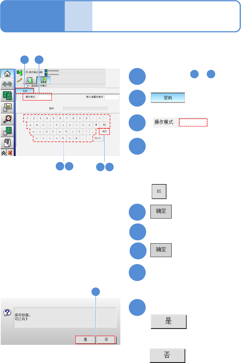 ●该画面能对工程师以及操作员模式的 A~E 的密码进行设定和登录。