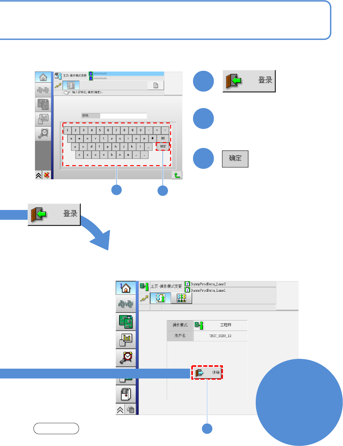●通过“操作模式的自动注销时间[min]”(→ 『工程师手册』P.13-1-2-2)