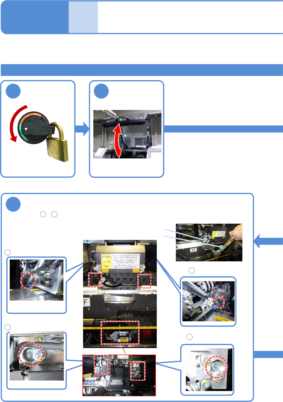 ●按照 ~ 的顺序,使用扭矩扳手、长钻头把固定螺栓 (4处) 拧紧。