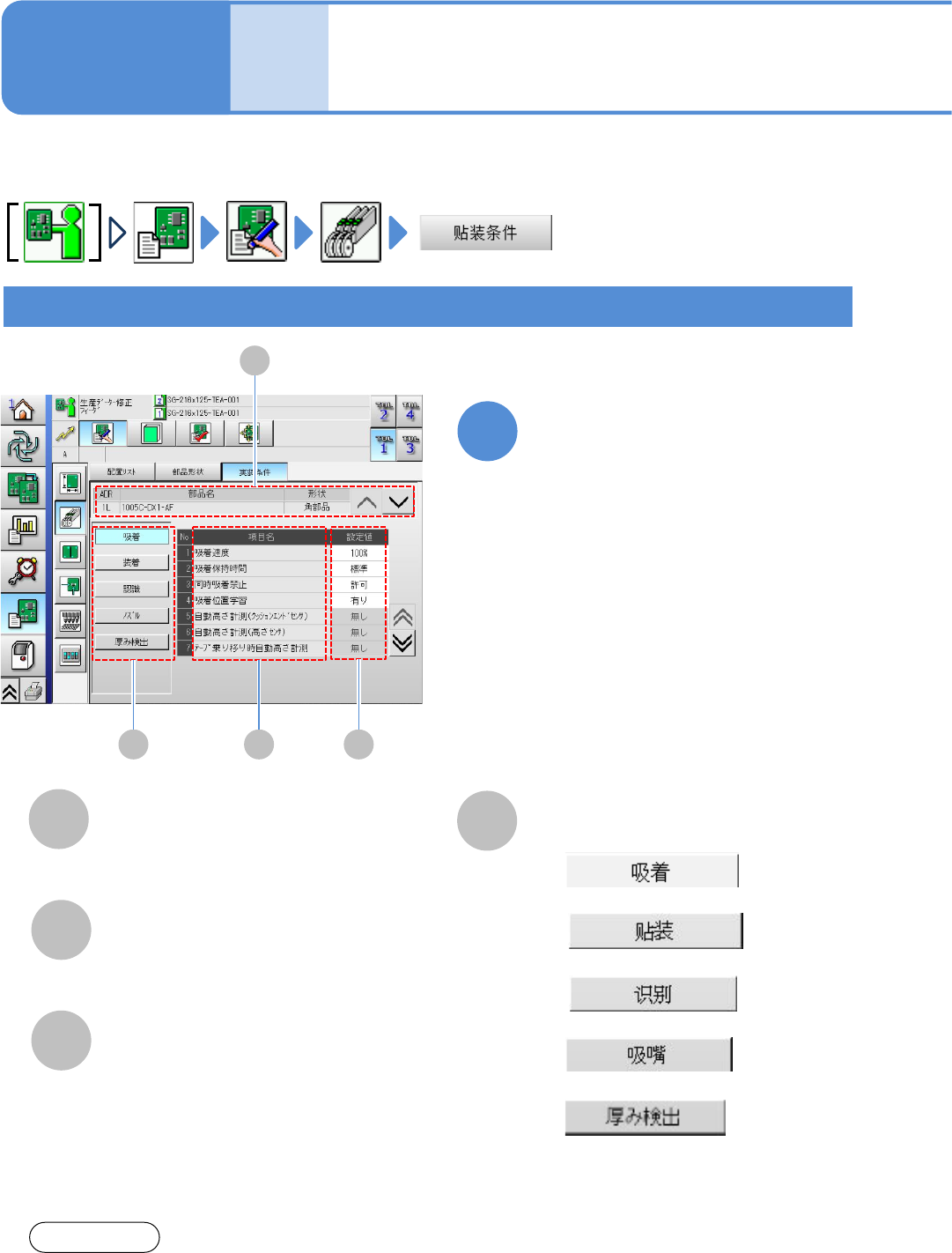 吸着、贴装、吸嘴条件的确认和修改