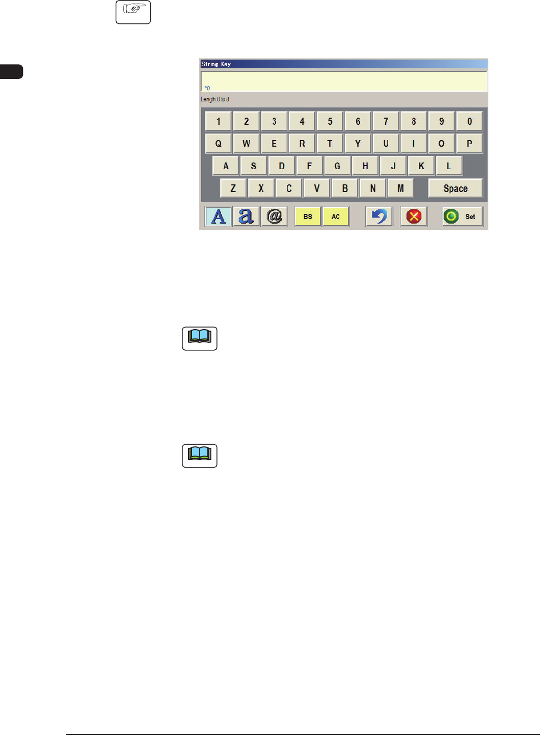 When a password is set, the "String Key" window opens.