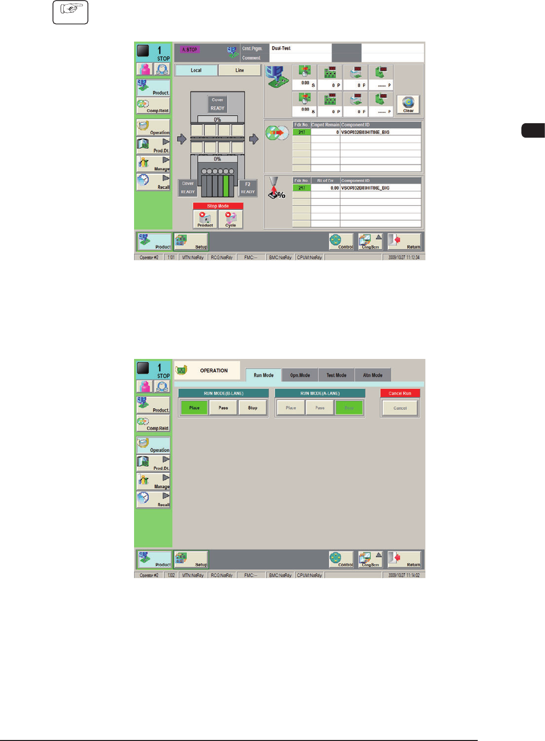 1OM-1610 3-10 1. Automatic Operation : Chap.3 091 1-001 (3) Press the [Place] button (entitled "Run Mode"). Note Press the [Pass] button (entitled "RUN MD") to set the "Pass" mode. When the …