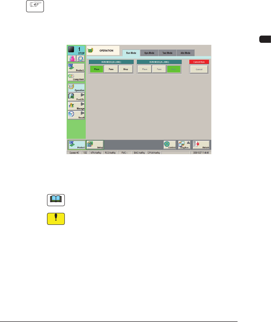 1OM-1610 3-24 4. Stop, Interruption, and Restart of Operation : Chap.3 4.1.3 Method based on Setting of Automatic Operation Stop Set the "Auto stop mode" to [Enable] in advance on the "PCB Transfer Mode&qu…