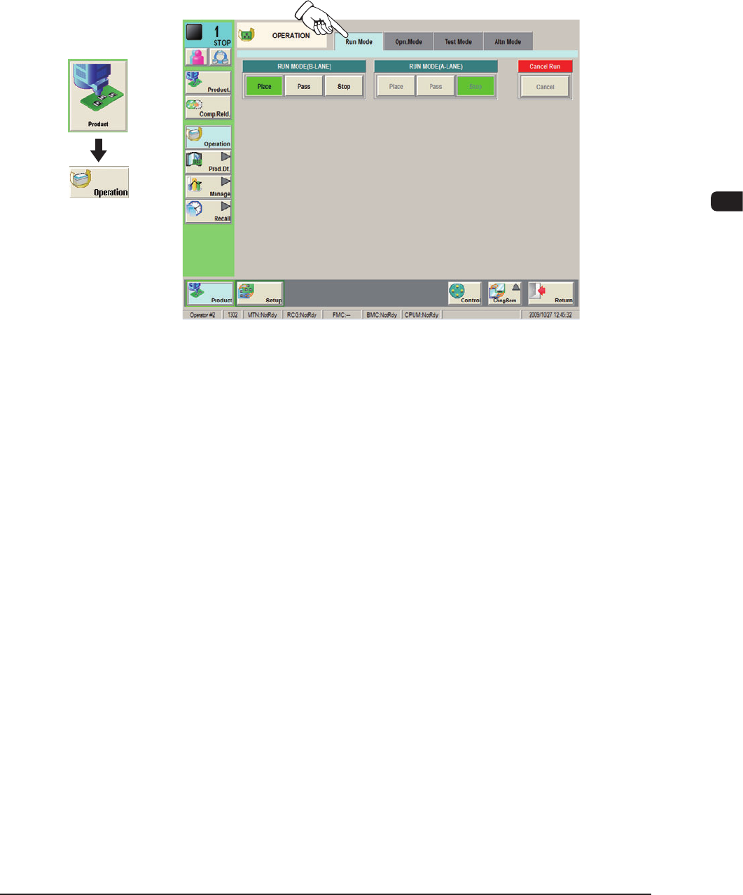 Set the "Run Mode" on the "Opn. Mode" tab sheet in the "OPERATION" window.