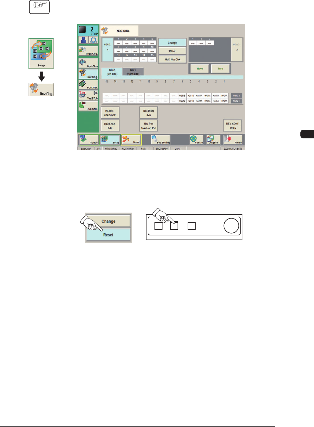 (2) Press the [Reset] button in the "NOZ.CHG." window.