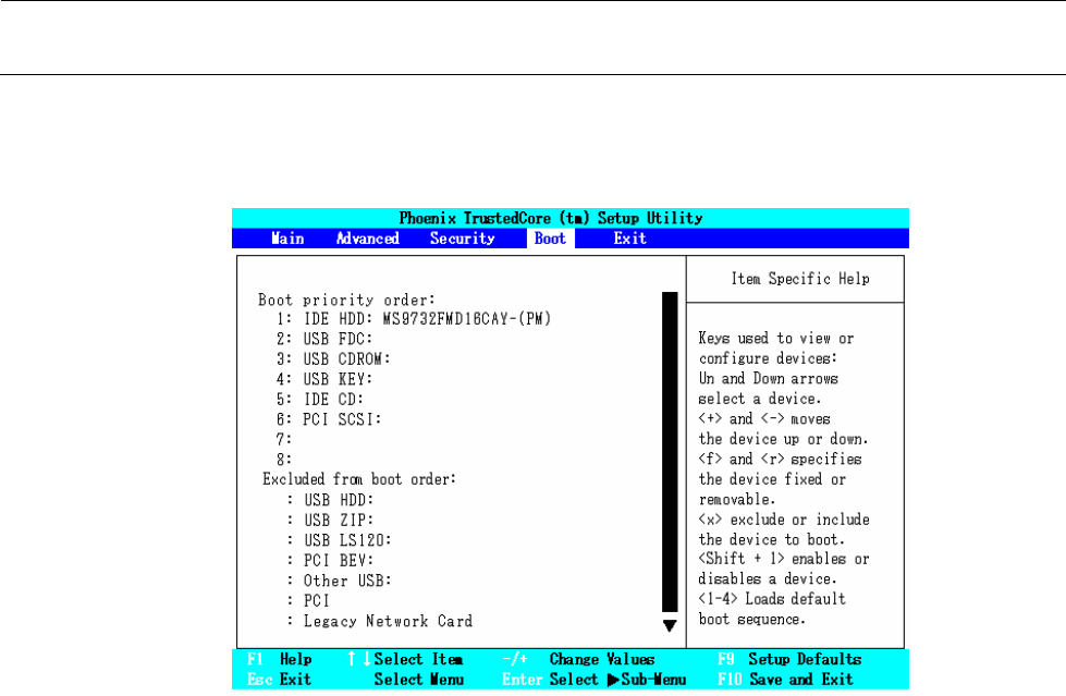 (1) 怎样变更“Boot priority order:”内的順序
