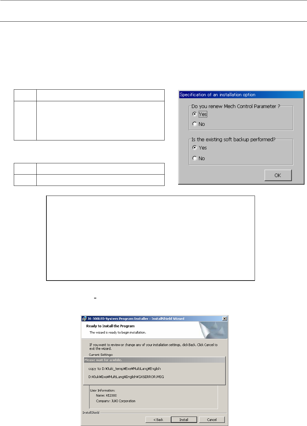 对「 Do you renew Mech Control Parameter?」和「 Is the existing soft backup performed?」的提问,