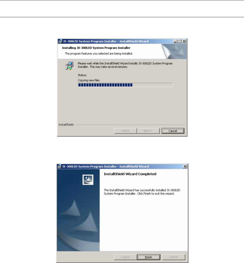 Rev 1.0 维修调整要领书 12-23 10 ) 安装中间,进行状态以条形图显示。 11 ) 安装结束后,显示安装结束画面。 点击 [Finish] 按钮,结束安装。 12 ) 请按照「 12-2-3-2 Flexline DB 的安装方法」,安装适合于系统版本的 Flexline DB 。 13 ) 请按照「 12-2-3-3 C 驱动器的更新操作」进行 C 驱动器的更新。 ※ 注意 如果不进行 C 驱动器的更新操作就重新启动, …