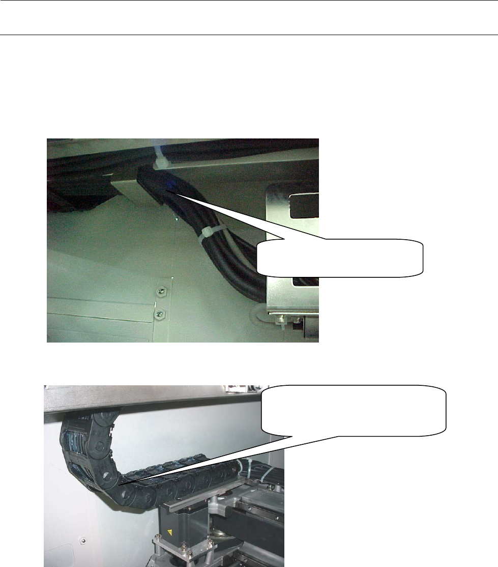 5) 1394 机器人电缆线按图示的路线配置,穿过贴装头右侧与来自 LNC 的连接器中继连接。
