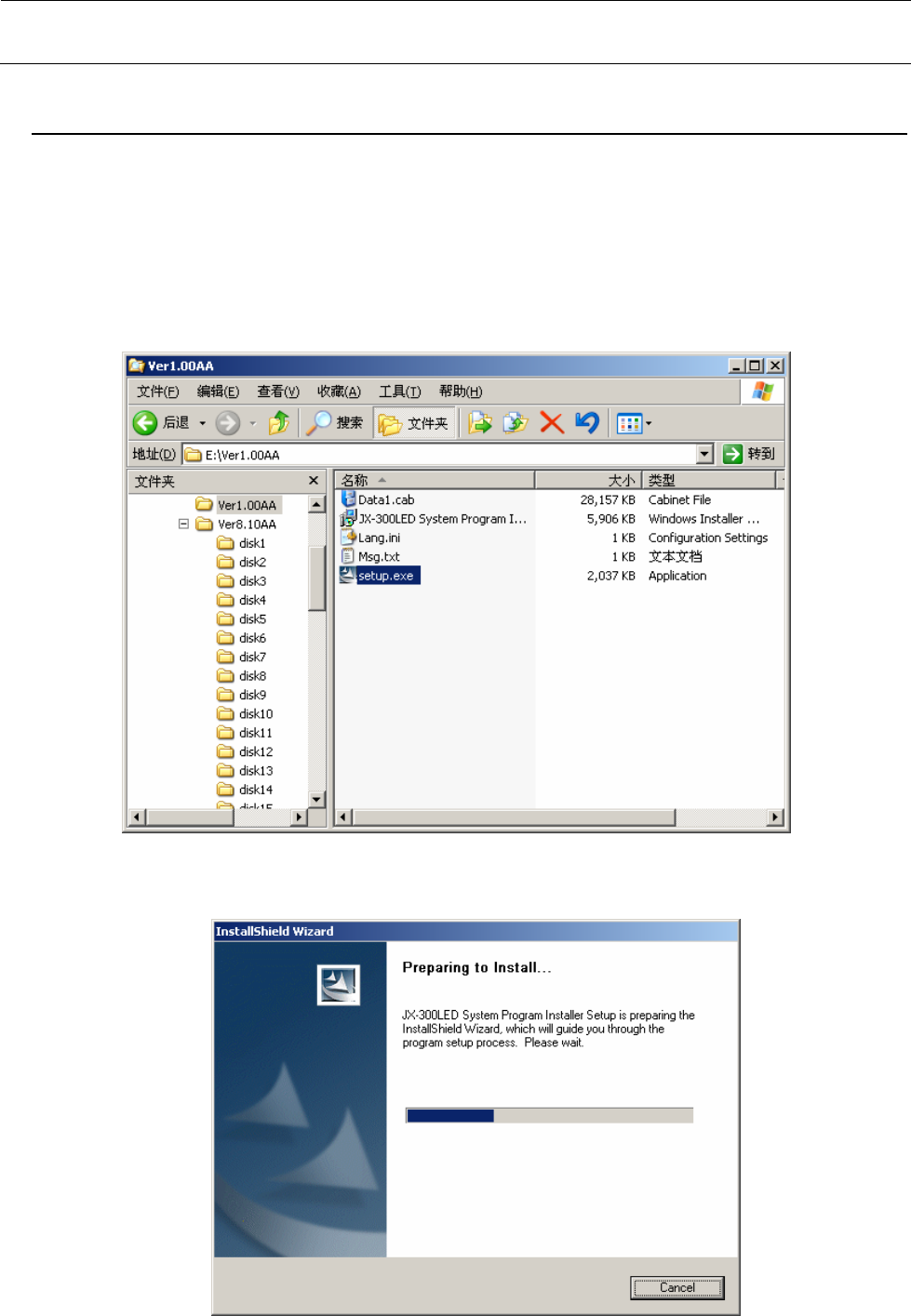 在存在某一版本 JX-300LED 系统的基础上,为了版本升级而安装新版本的 JX-300LED 系统时,操作步