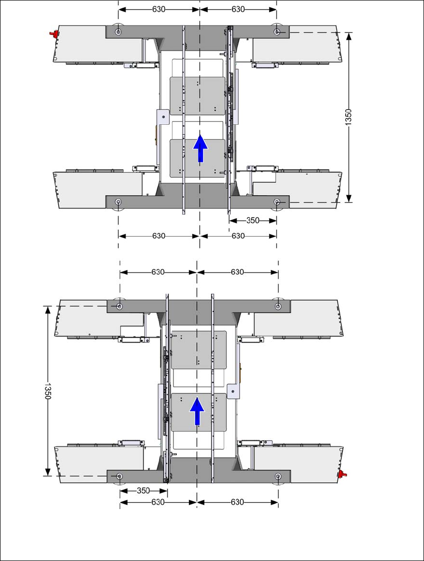 Rys. 4.3 - 6 Odległości łap podwójnego przenośnika płytek drukowanych w milimetrach