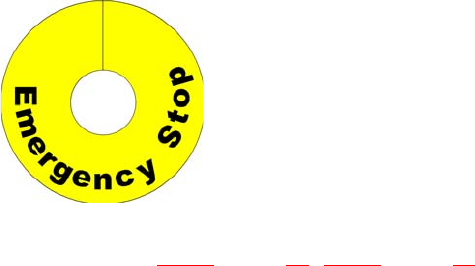 Tabliczka ostrzegawcza na przycisku ZATRZYMANIA AWARYJ-
