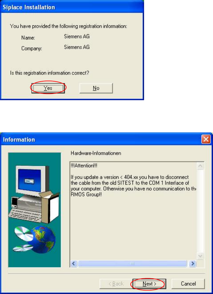 → Depending on whether you answer Yes or No, you can modify your entries or continue the