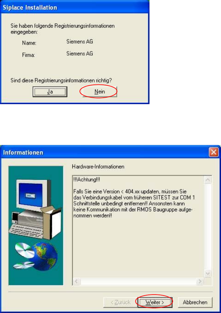 Installation Manual, Station Software Version 408.01 Edition 03/2006 Registrierungsbestätigung → Überprüfen Sie Ihre Angaben nochmals. → Je nachdem, ob Sie mit Ja oder Nein antworten, können Sie die eingegebenen Daten än…