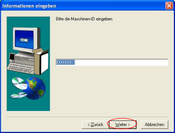 → Geben Sie die eindeutige Maschinen-ID an. Die ID finden Sie auf dem Typenschild am