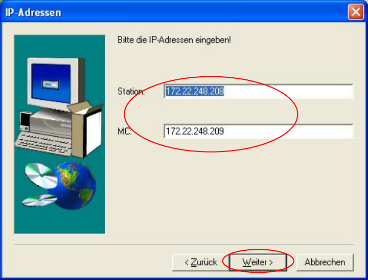 → Geben Sie die IP-Adressen der Stationsrechner Ihrer SIPLACE-Bestückstation ein.