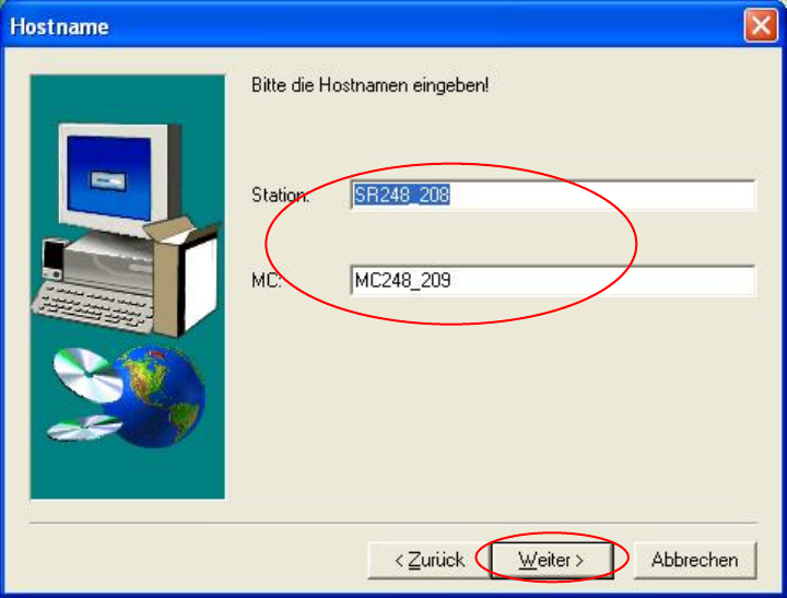 und die Hostnamen der vorhergehenden Station und die der nachfolgenden Station eingeben: