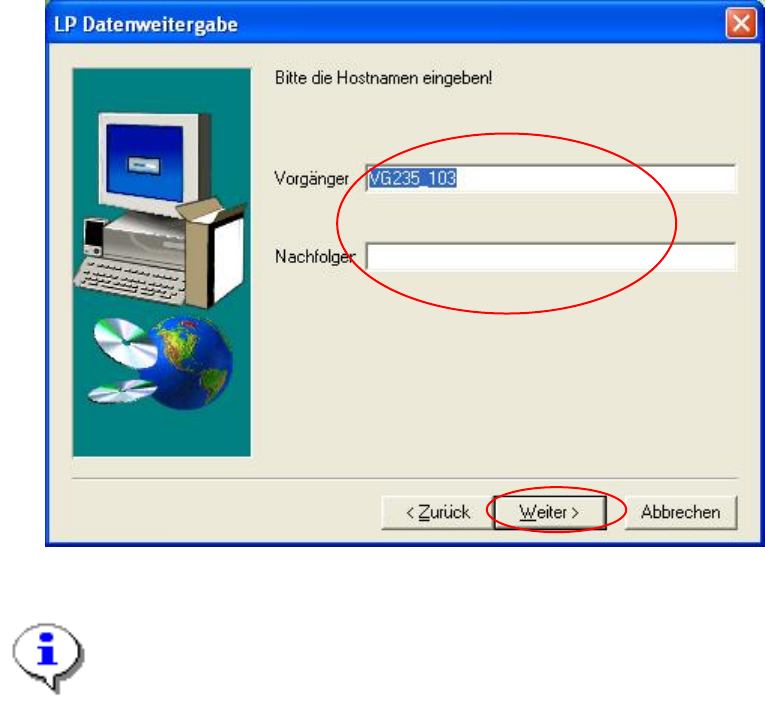 und die Hostnamen der vorhergehenden Station und die der nachfolgenden Station eingeben: