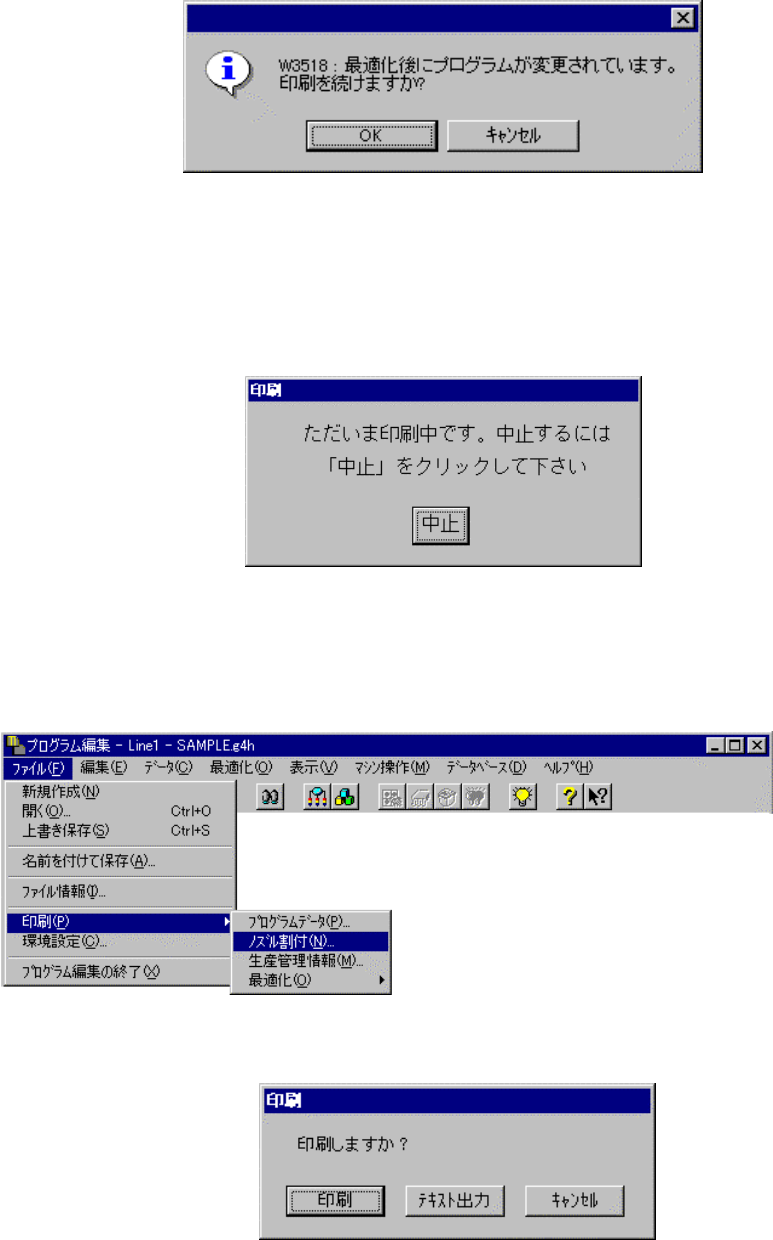 印刷実行後 下記のダイアログが表示された場合,最後に最適化を実行した後にプログラムデータ