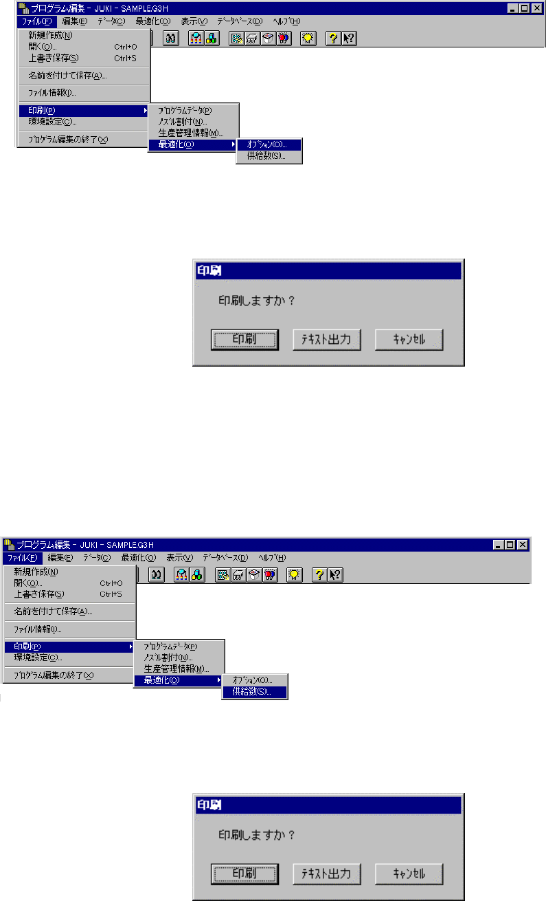 ファイルメニューから印刷,最適化,供給数を選択します。