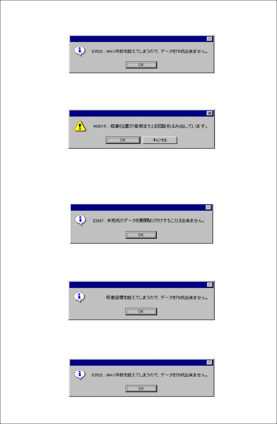 次の場合,エラーとなり,エラーダイアログを表示します。