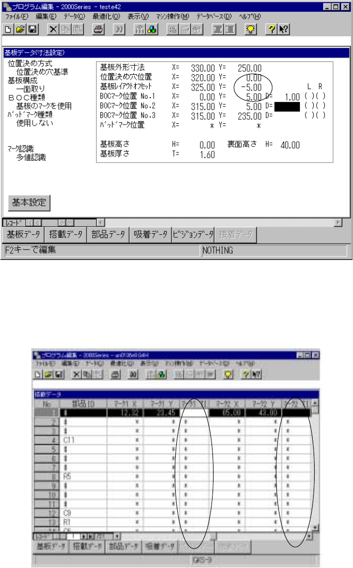 手順1)基板データ画面の該当BOCマーク点のD=のセルにカーソルを移動します。