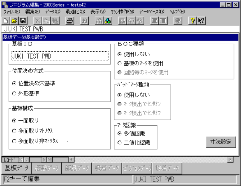 基板 ID をエディットボックスで,位置決め方法,基板構成,BOC 種類,バッドマーク種類をラジ
