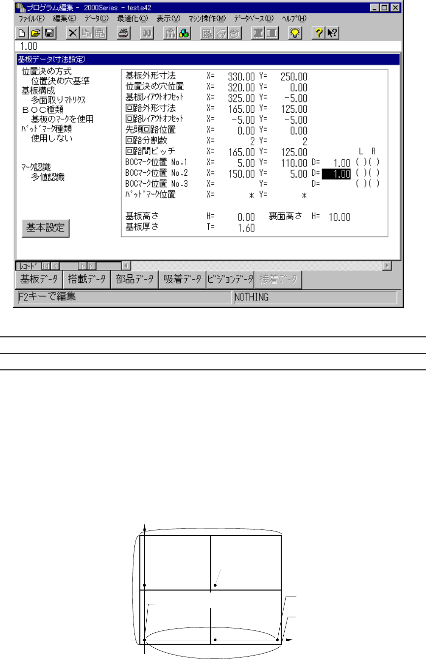 基板位置基準からみた先頭回路(基板上で4隅にある回路)の回路位置基準の座標を入力し