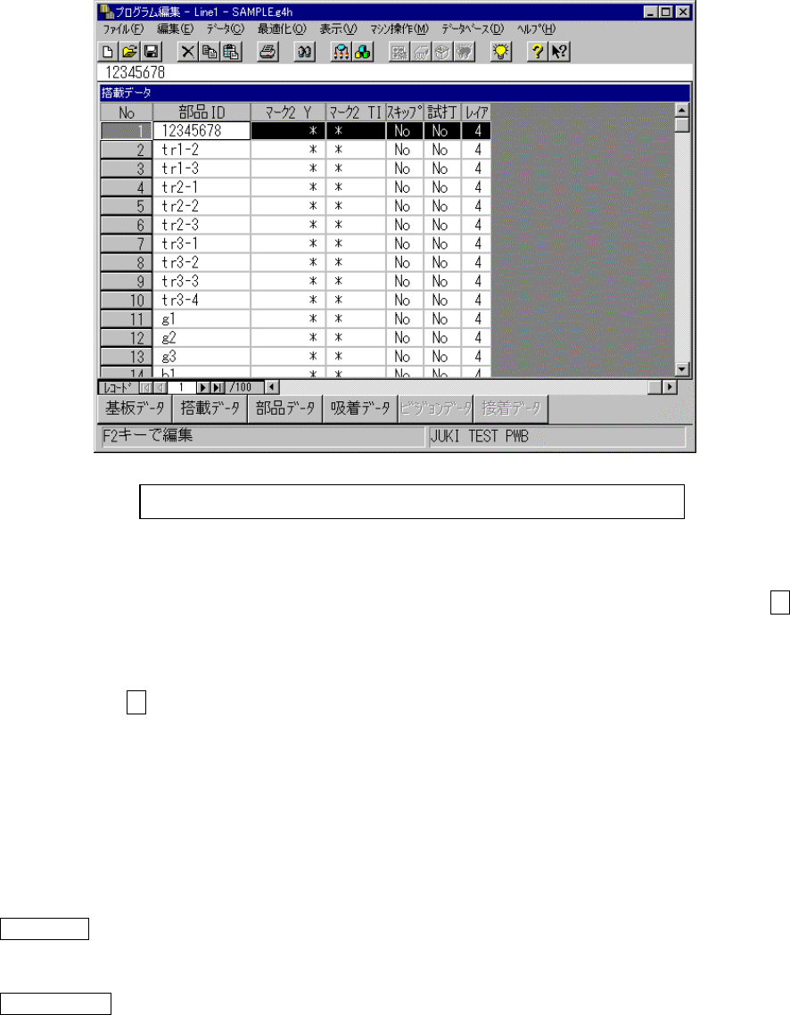 4 - 46 スクロールボックス スクロールボックス スクロールボックス スクロールボックス スクロールボックスをドラッグすると,全データの表示範囲をスクロールバーの 長さに見立て,ス クロールボックスの位置を表示位置としたスクロールが行われます。 未入力行への移動 未入力行への移動 未入力行への移動 未入力行への移動 最終行で, ↓ キー を押すと新規レコード が作成されます。カ ーソルは,部品 ID のセ ルに移動しま す。 (…