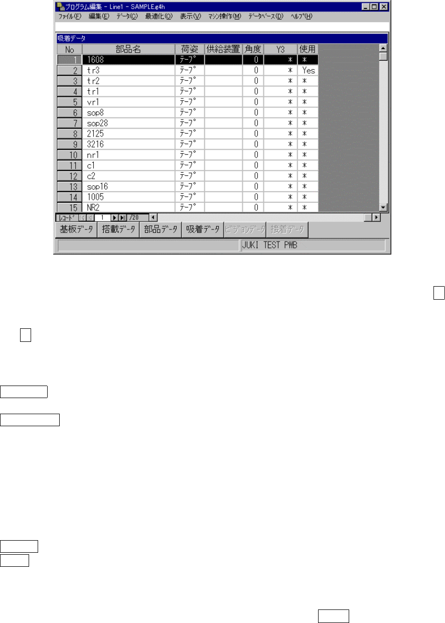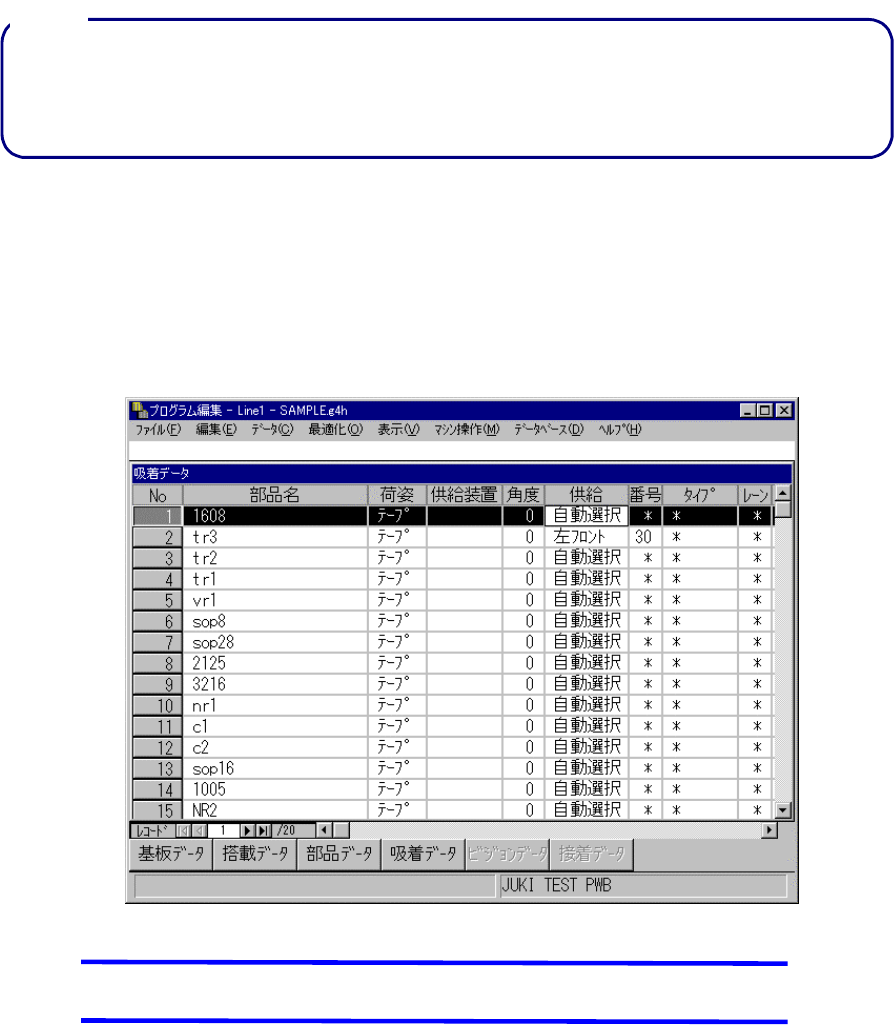 吸着データは,テープ,スティック等の荷姿で供給される部品を,装置本体にセットするために,