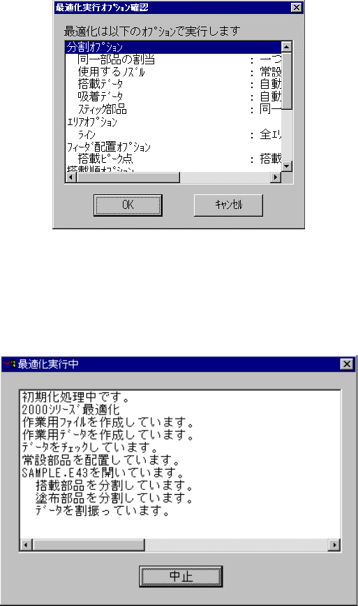 最適化ダイアログ中の実行ボタンを選択することにより,最適化処理が開始されます。