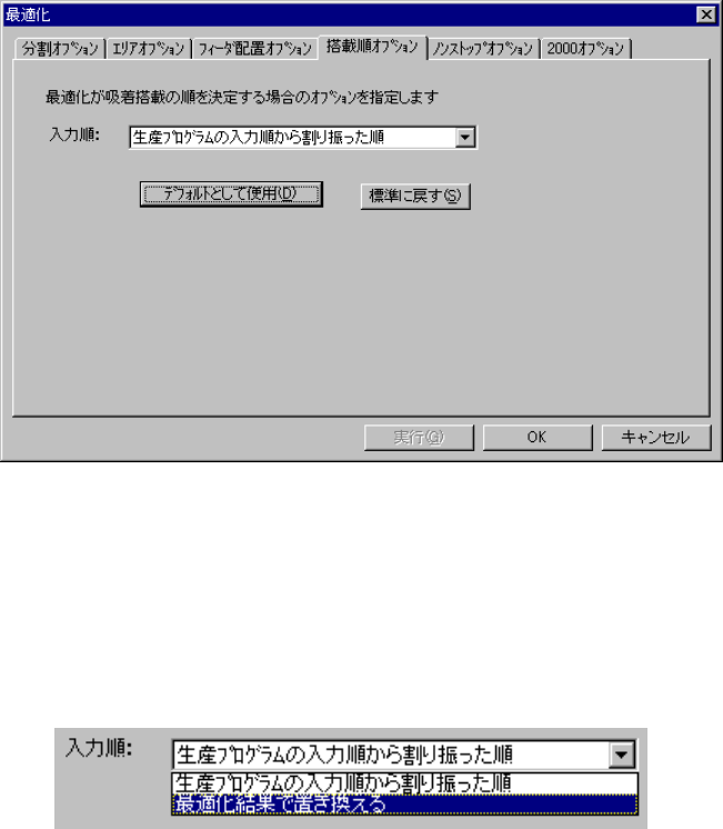 搭載順オプションでは,最適化が吸着搭載の順を決める場合のオプションを指定できます。