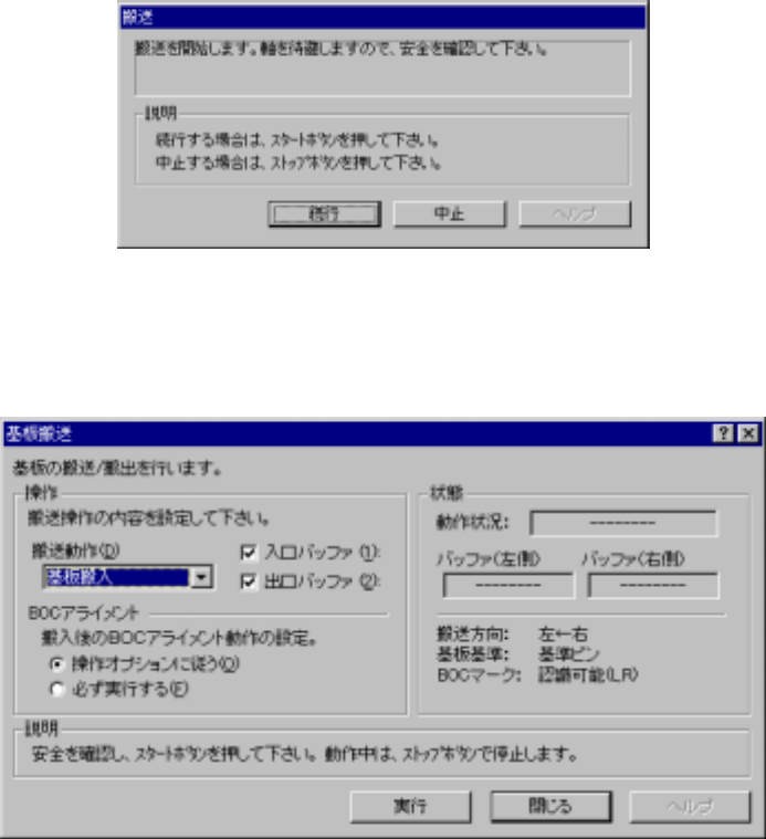 軸を安全位置に待避後,以下の基板搬送ダイアログが表示されます。