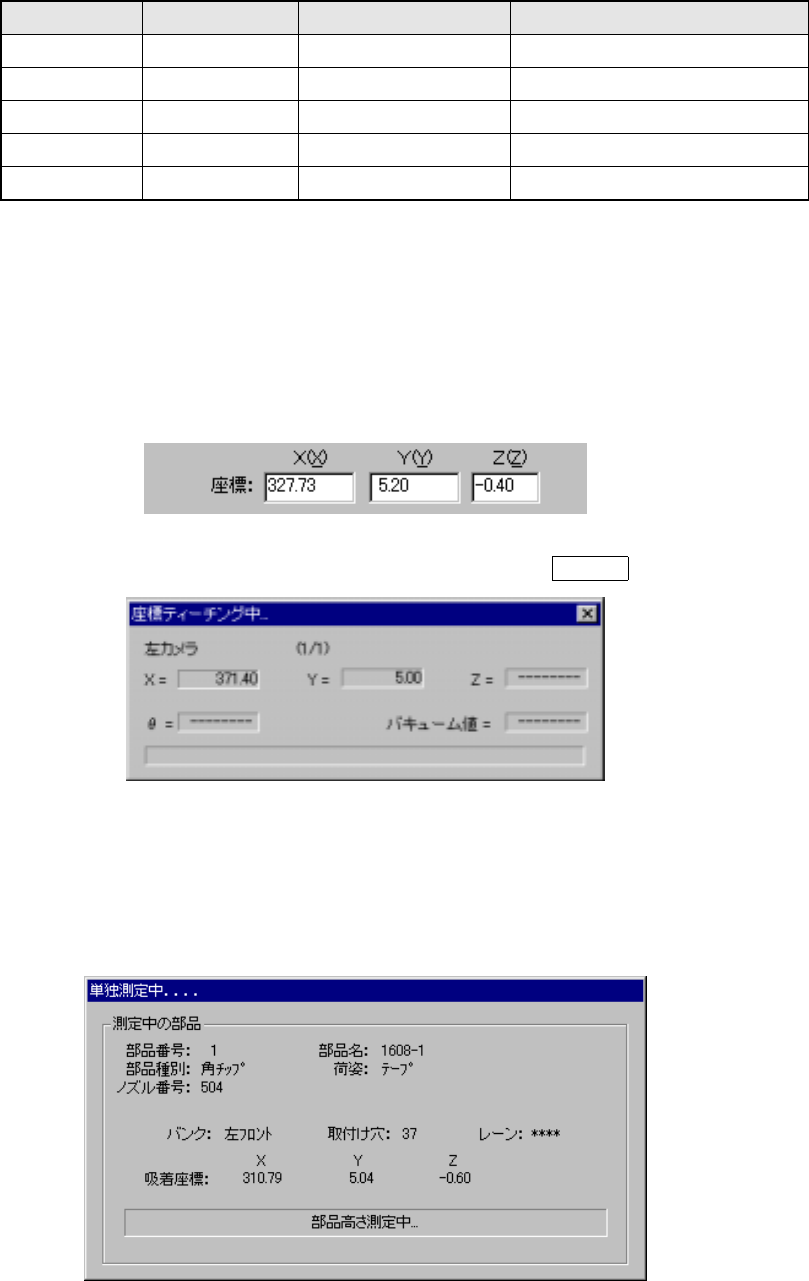 4 - 158 6) ショートカットキー 単独測定条件設定画面では、以下のショートカット操作を行うことができます。 キーボード キーボード キーボード キーボード オペパネキー オペパネキー オペパネキー オペパネキー HOD キー キー キー キー 動作 動作 動作 動作 F10 ENTER 単独測定の実行 F4 フィーダーノック F5 PREVIOUS 前代替え部品 F6 NEXT 次代替え部品 ESC CANCEL 戻る 7)…