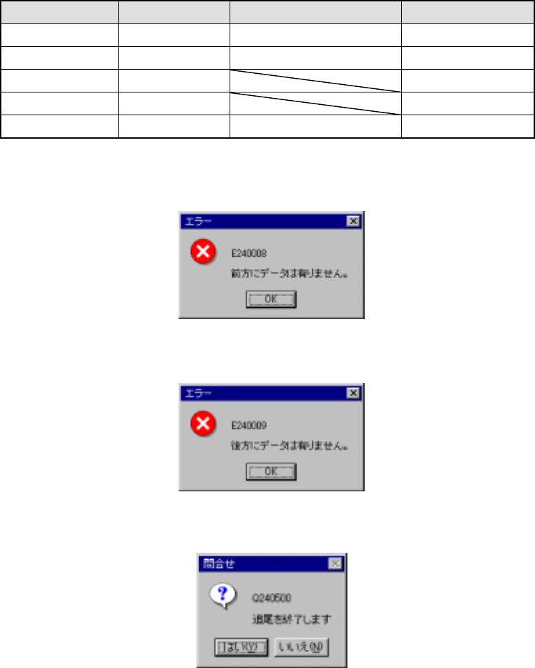 前点への移動でデータがそれ以上ない場合は以下のダイアログが表示されます。