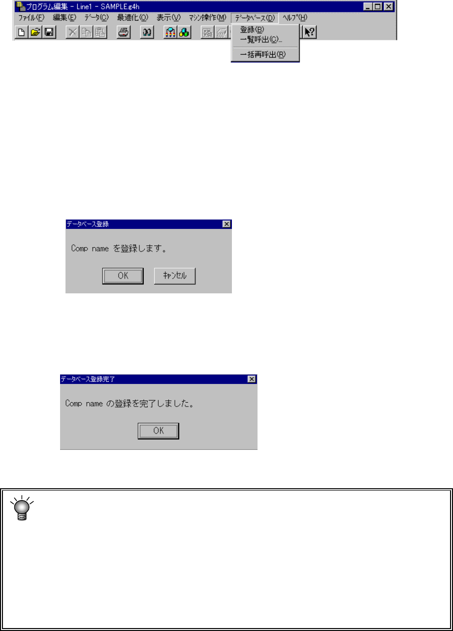 プログラム編集中に部品データを部品データベースに登録することができます。登録は,部品デー