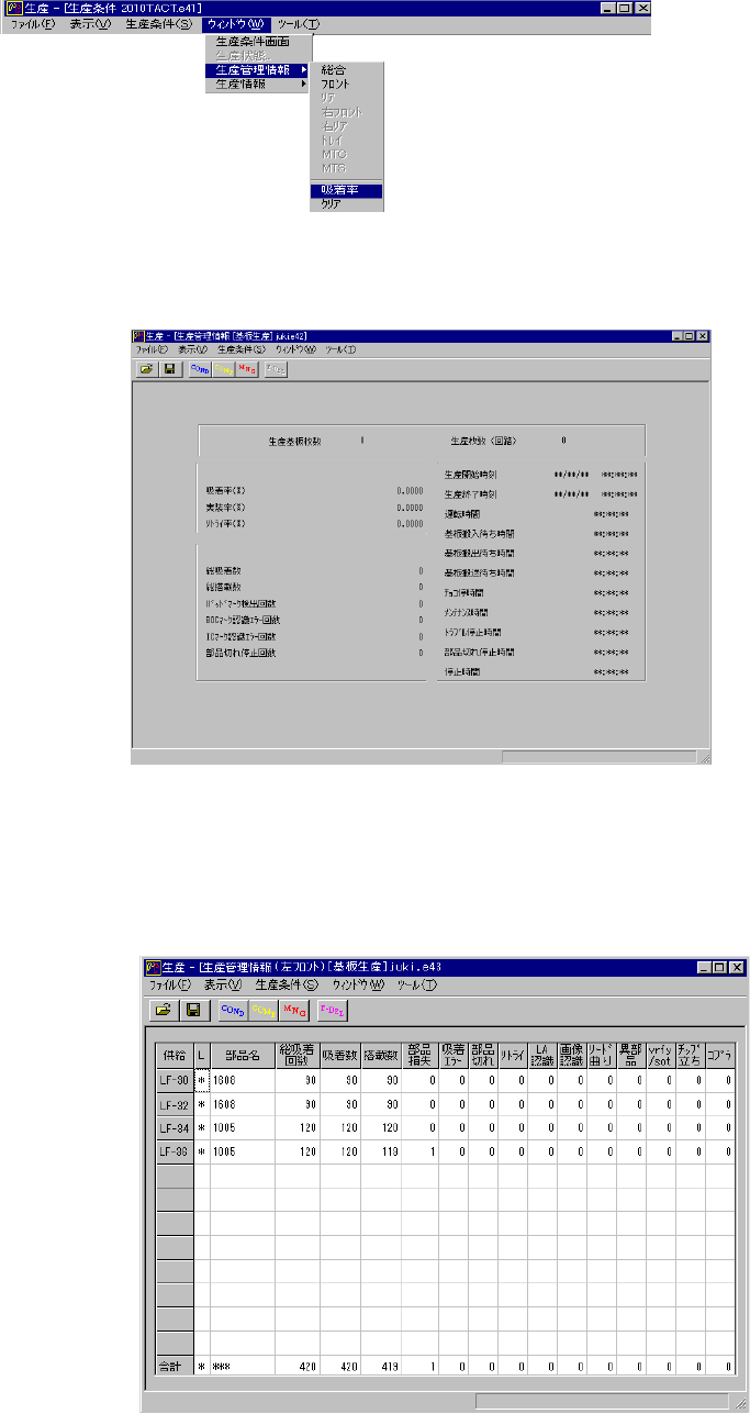 生産管理情報はメニューバーの [ウィンドウ − 生産管理情報 − クリア] によりクリアします。
