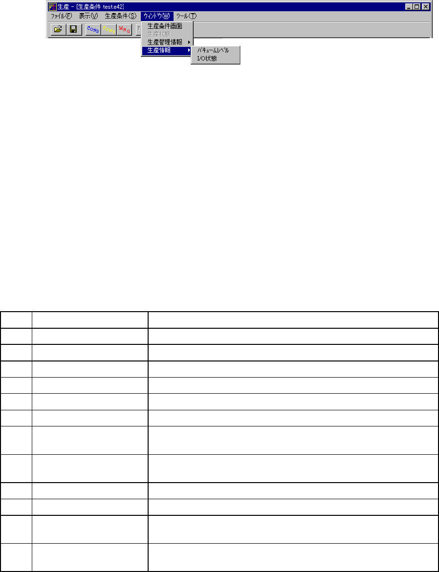産管理情報はメニューバーの [ウィンドウ → 生産管理情報 → クリア] によりクリアします。