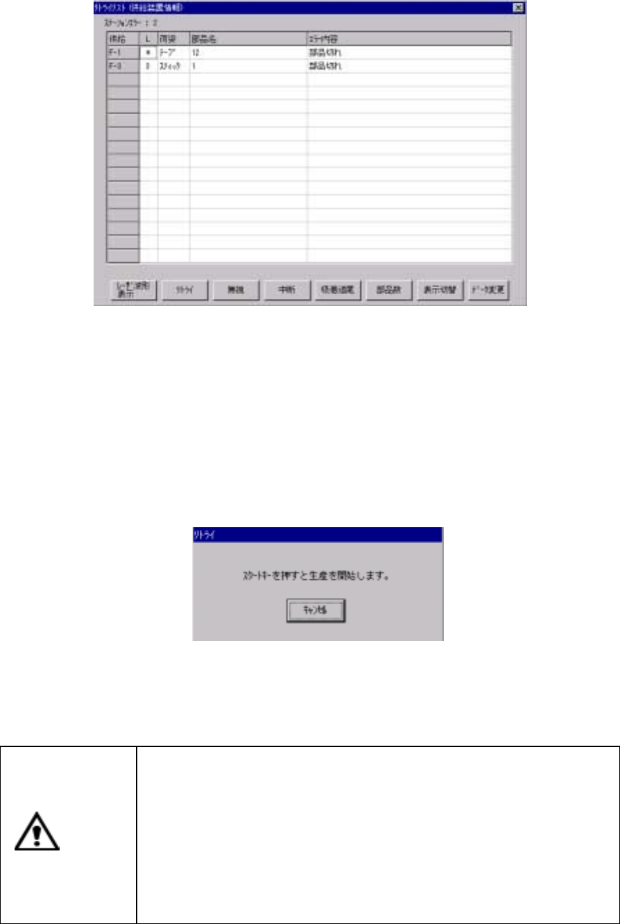 生産中のリトライリスト表示は,生産の続行を行うかどうかの判断をする為に表示されます。従っ