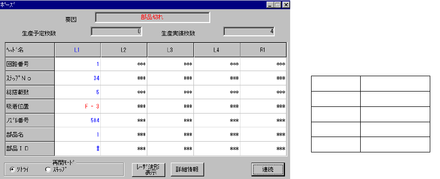 <いいえ>を選択すると,次の部品切れを起こしたフィーダの